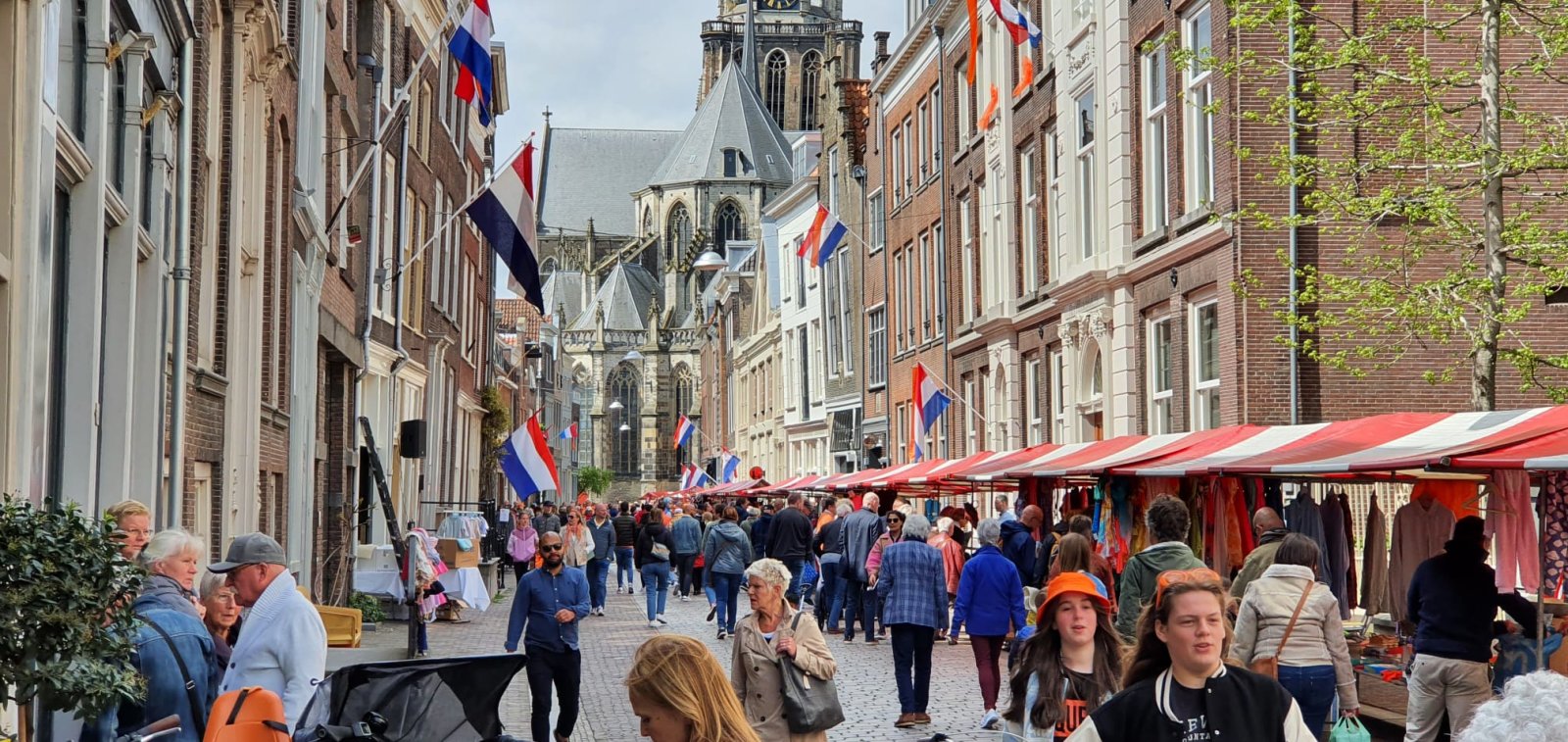 De binnenstad van Dordrecht wordt omgetoverd tot een feestelijke Oranjemarkt. Van 09:00 tot 17:00 uur kun je struinen langs ongeveer 150 kramen, die zich uitstrekken van de Grote Kerk tot aan de Kloostertuin.